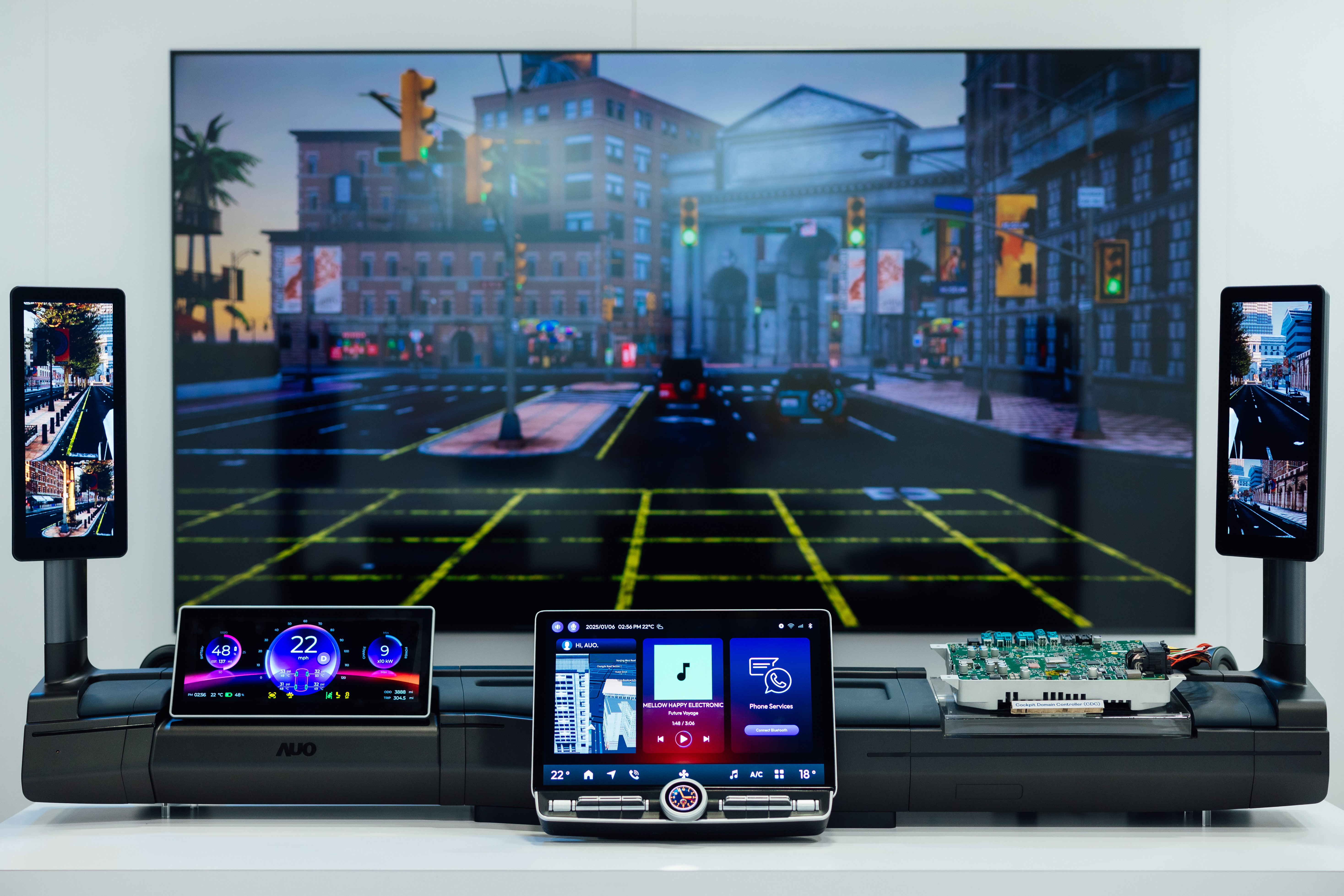 针对商用车的座舱需求,友达亦能提供完整的车用运算解决方案,串联仪表板、中控台及智慧侧边后视镜,并可以支援车队管理系统、导航及先进智驾辅助(ADAS)等需求,提升车辆安全及便于整体管理。