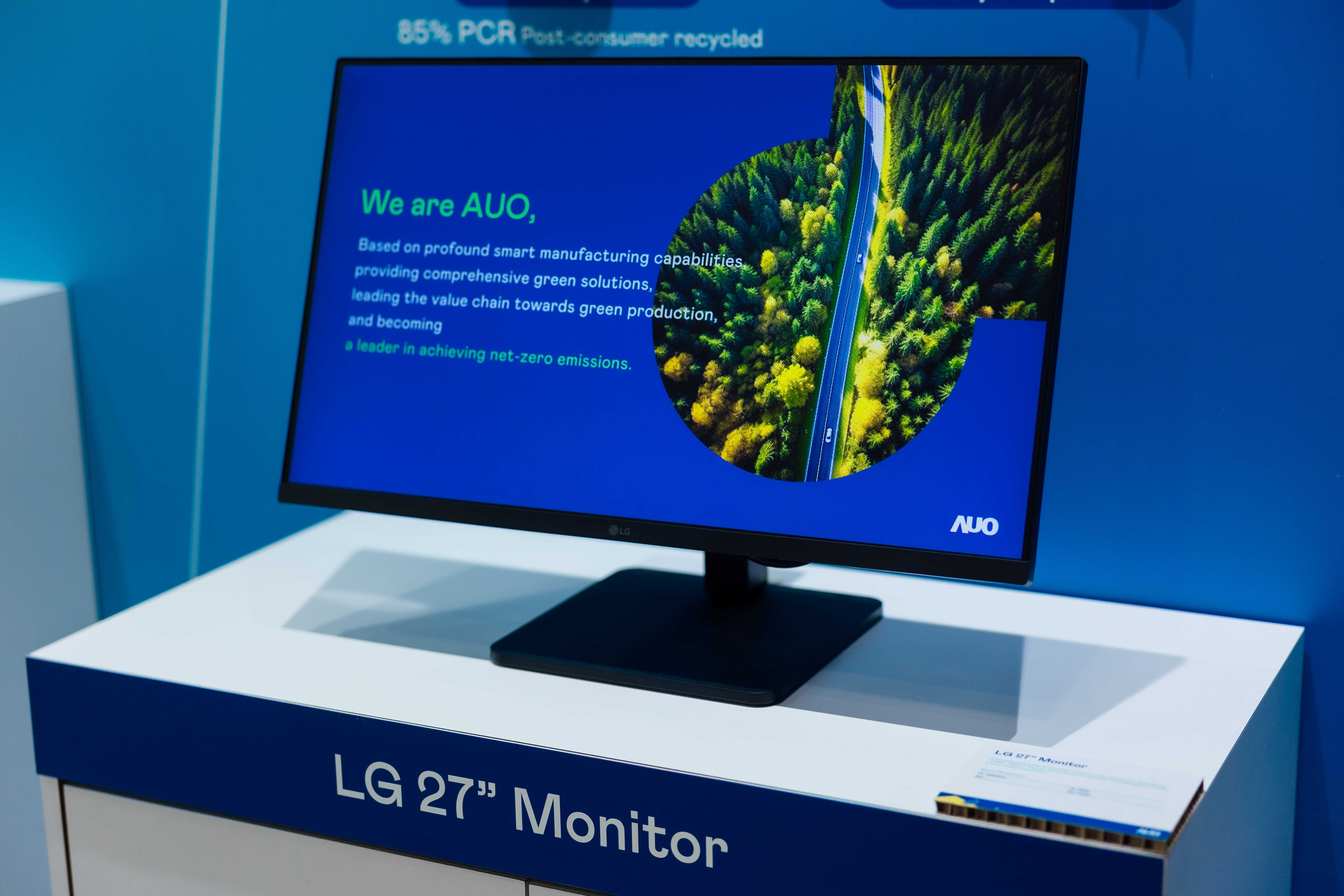 全球首款笔记型电脑采用友达100%绿电制造的面板,结合PCR外亦使用工业后回收材料(PIR),例如回收玻璃和金属,减少对环境的影响。